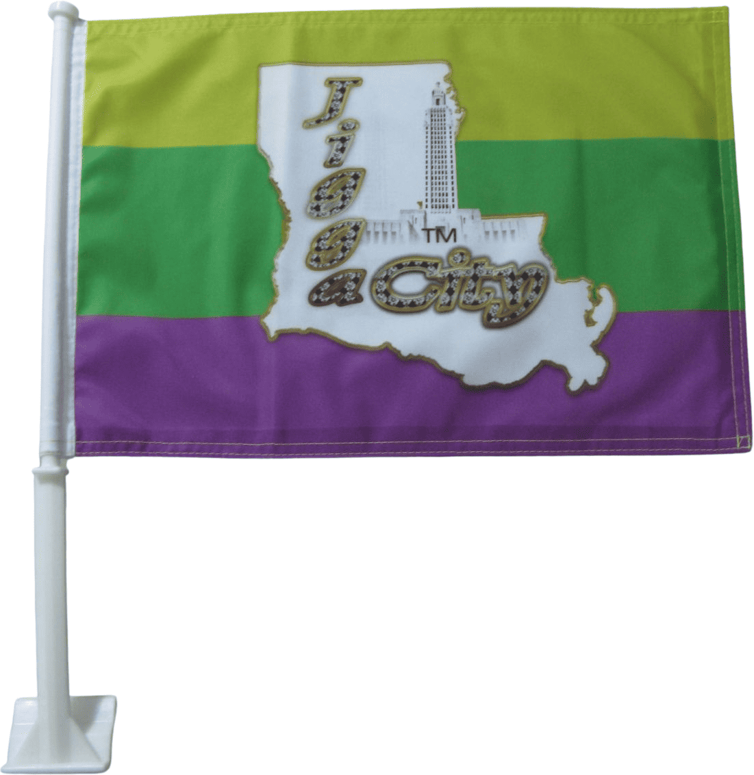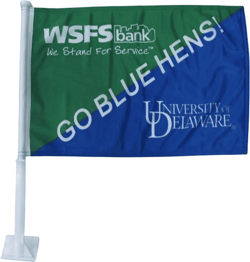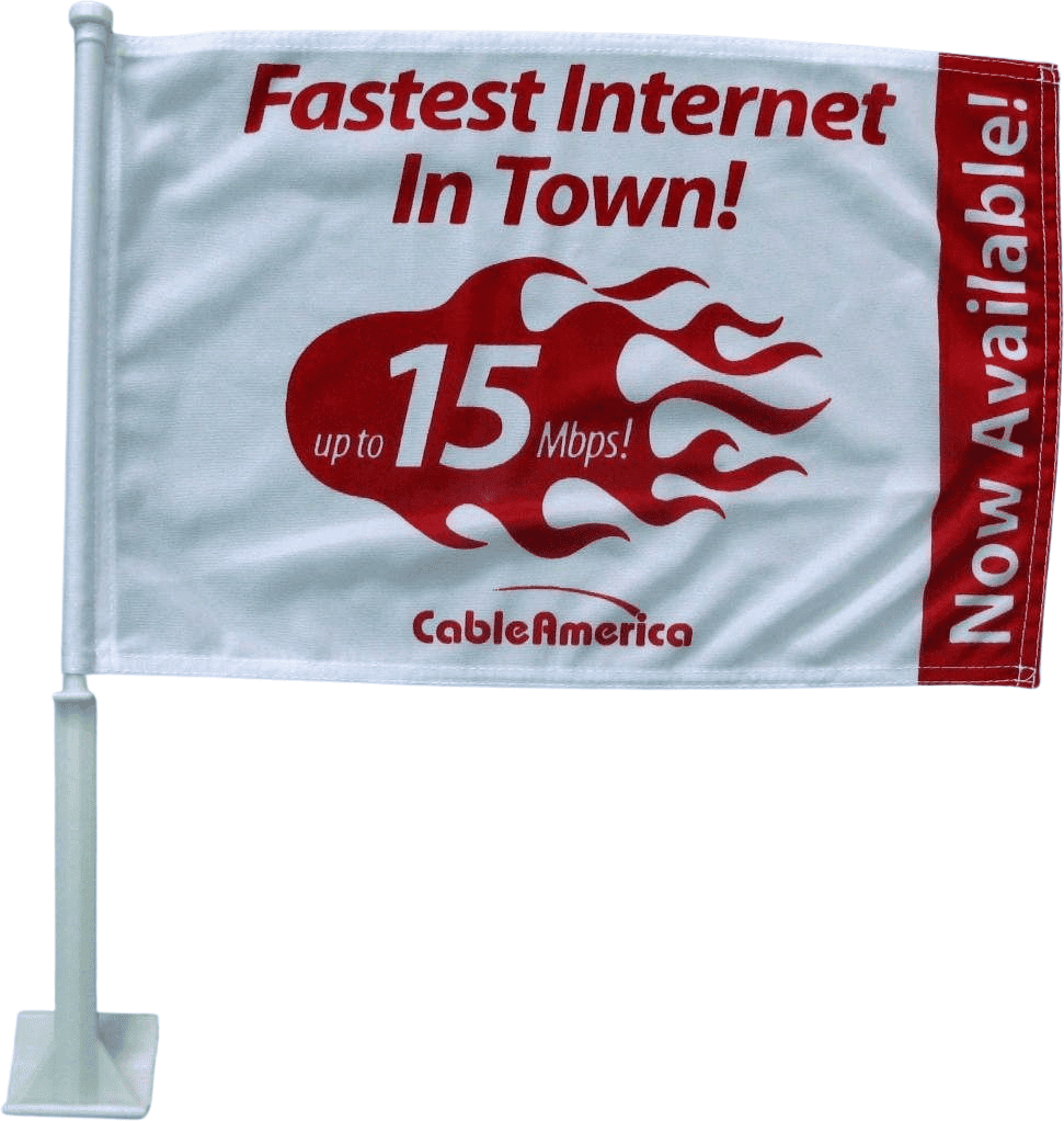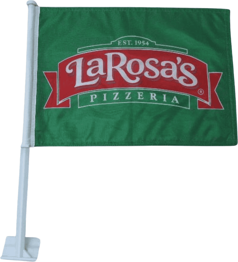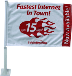 Additional InformationCustom premium polyester 2 ply car flag with 21" stiff plastic pole.